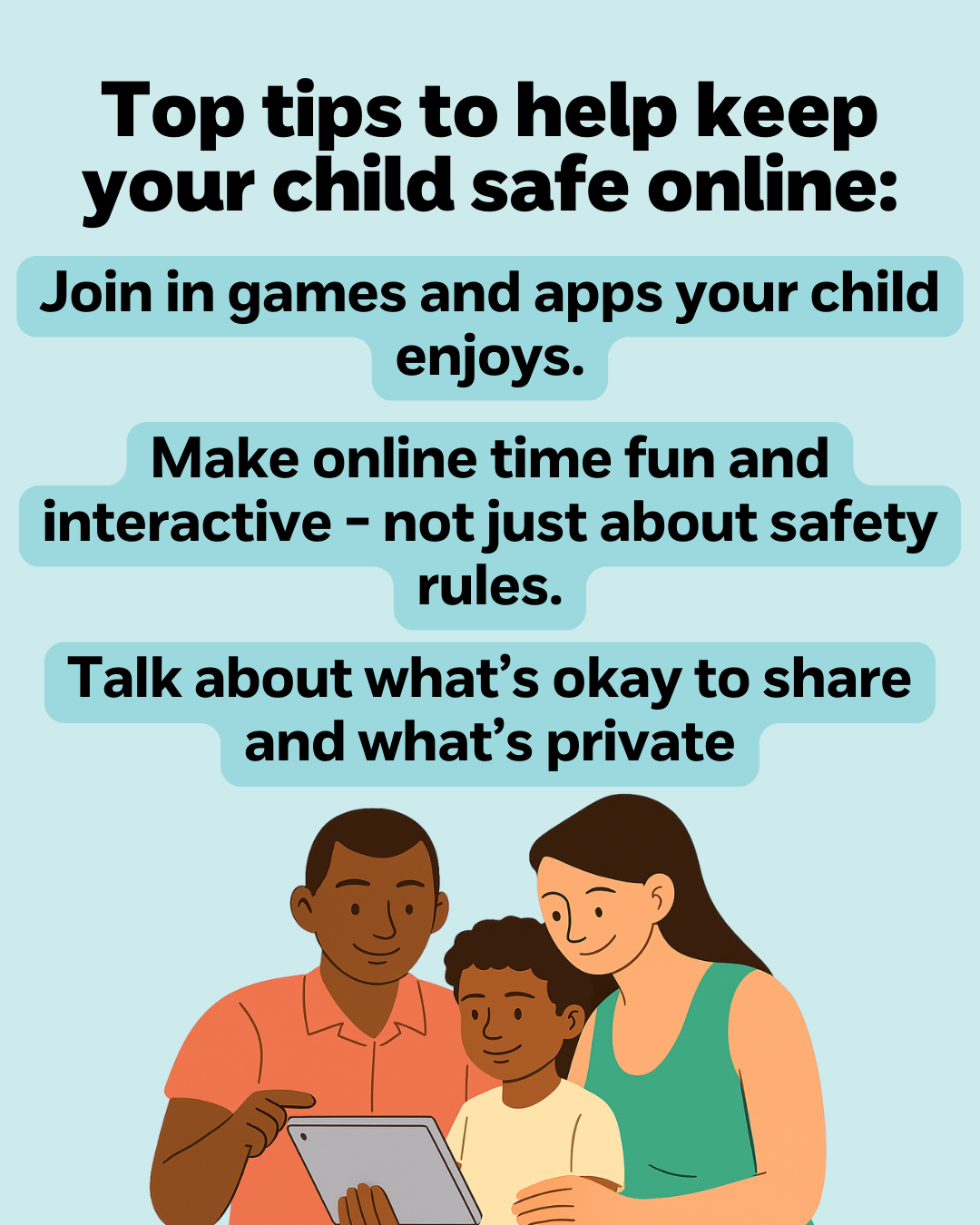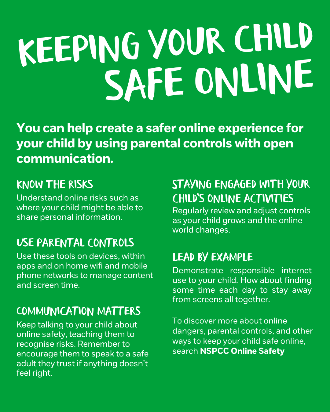 Everyone, especially children, need to be protected from online harms. Adults are responsible for their own online safety and for helping children understand how to behave, stay safe online and take action when there are concerns.
